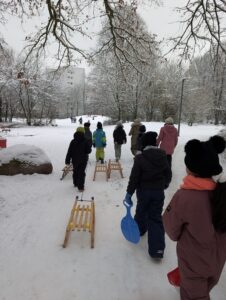 Hätten wir Anfang des Jahres geahnt, dass der Winter diesmal länger bleibt, hätten wir uns mit dem Schlittenfahren nicht so beeilen müssen! So tummelten sich unsere Klassen fast alle in der ersten Schnee-Woche am Rodelberg, trafen dort auf Kindergartengruppen und Klassen der Nachbarschule – und hatten alle zusammen sehr viel Spaß! Toll, dass es diesen Rodelberg in der unmittelbaren Nähe gibt!